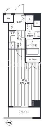 | 間取り | 1K | 専有面積 | 28.07㎡ |