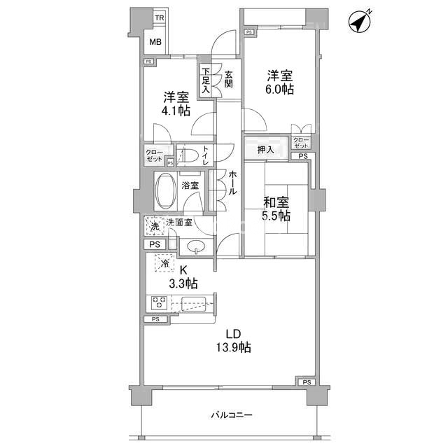 間取り | 3LDK | 専有面積 | 74.57㎡ |