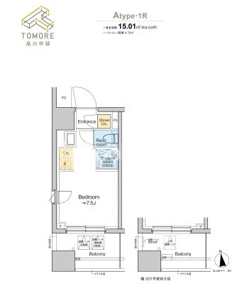 | 間取り | 1R | 専有面積 | 15.01㎡ |