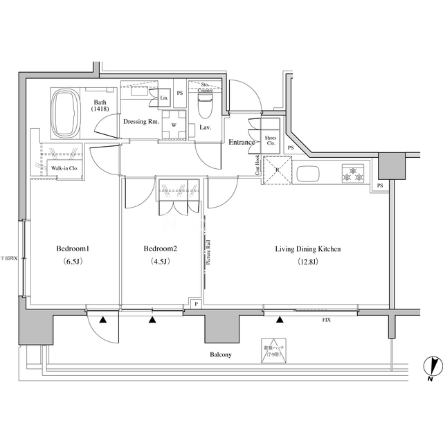 | 間取り | 2LDK | 専有面積 | 56.46㎡ |