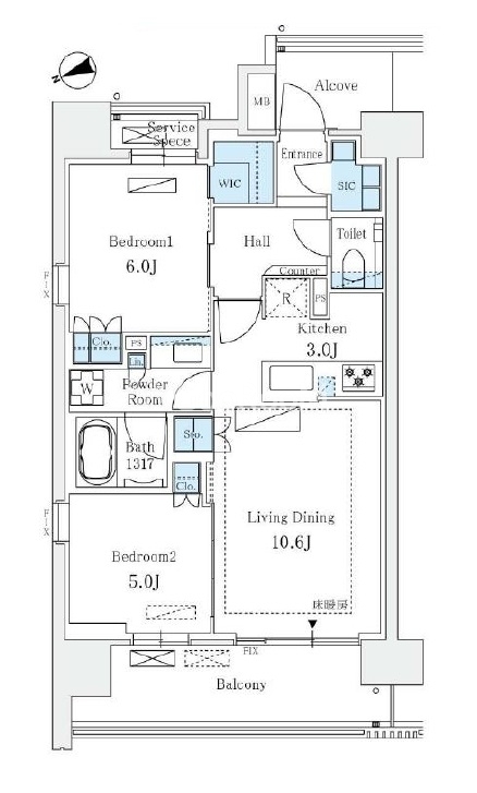 間取り | 1LDK | 専有面積 | 58.71㎡ |