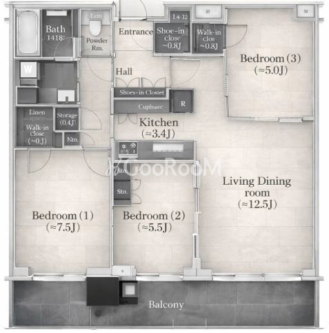 間取り | 3LDK | 専有面積 | 77.3㎡ |