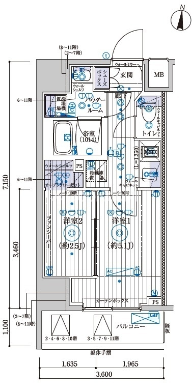 | 間取り | 2K | 専有面積 | 25.9㎡ |