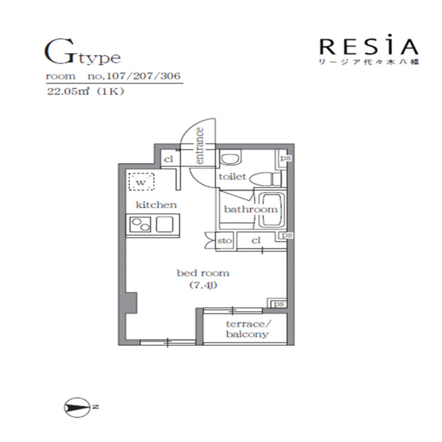 | 間取り | 1K | 専有面積 | 22.05㎡ |