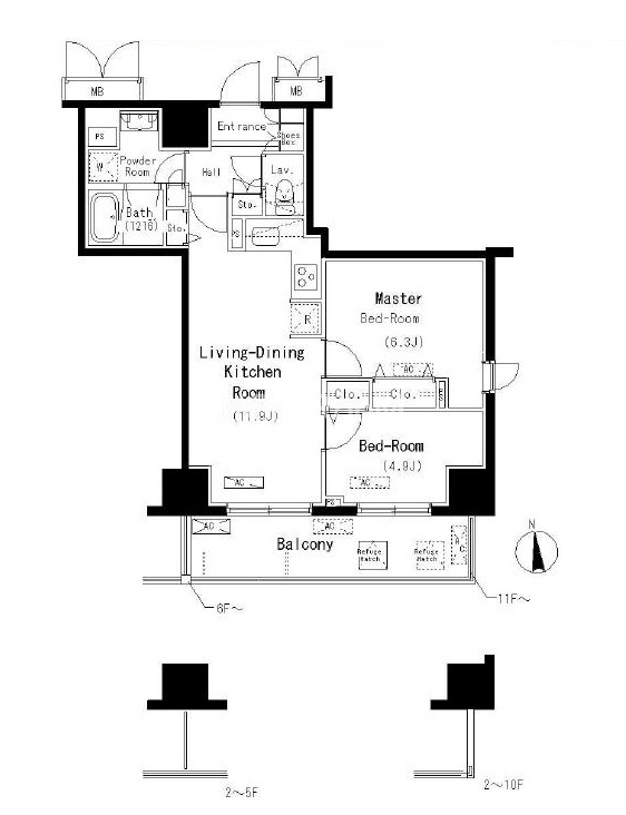 | 間取り | 1K - 2LDK | 専有面積 | 32.82㎡ - 52.90㎡ |