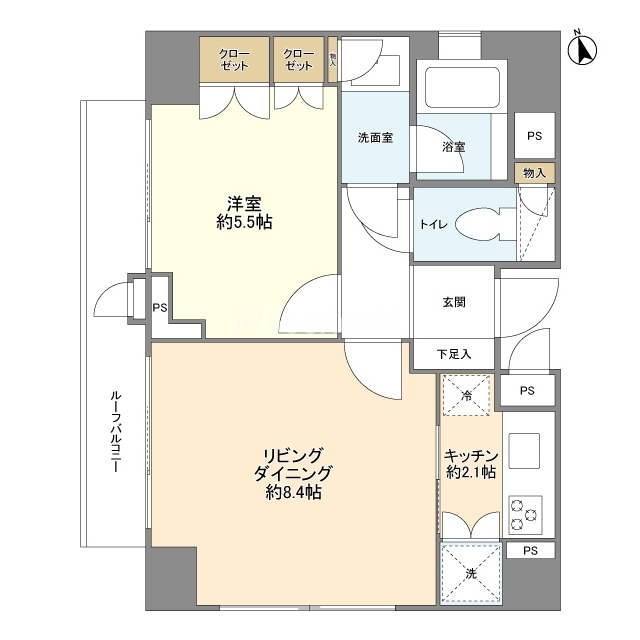 北西向き、 広さ42.78㎡のお部屋です。