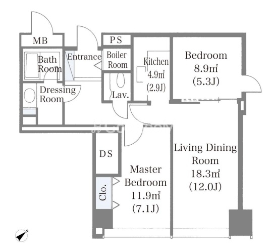 間取り | 2LDK | 専有面積 | 64.34㎡ |