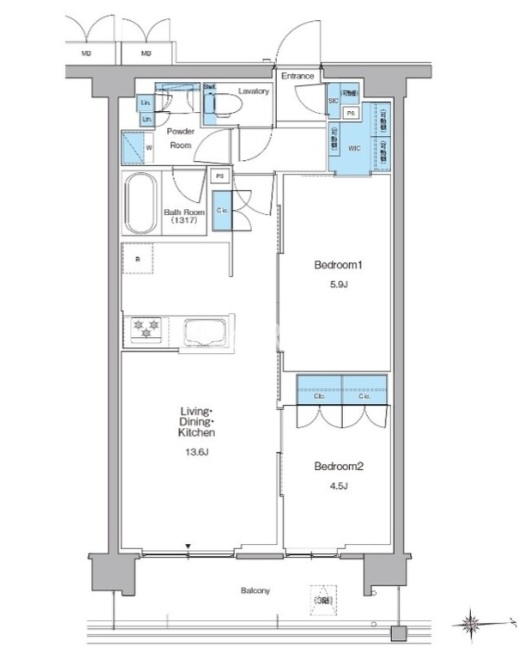 | 間取り | 2LDK | 専有面積 | 55.29㎡ |