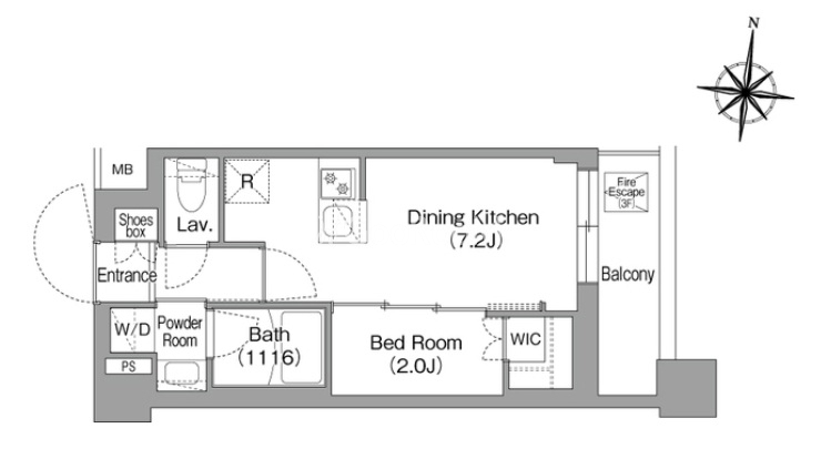 間取り | 1DK | 専有面積 | 25.11㎡ |