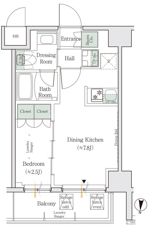 | 間取り | 1DK | 専有面積 | 25.71㎡ |