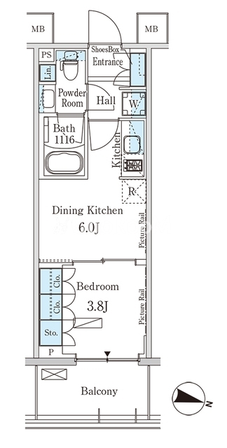 間取り | 1DK | 専有面積 | 26.13㎡ |