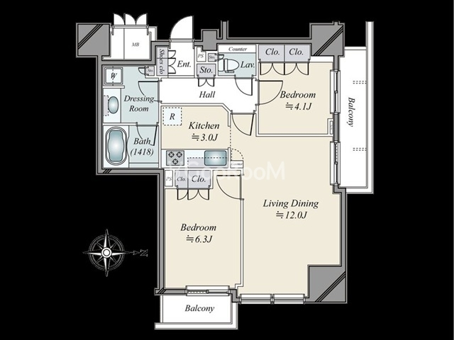 間取り | 2LDK | 専有面積 | 61.43㎡ |