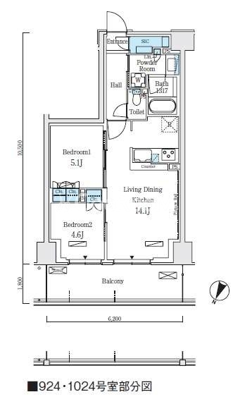間取り | 2LDK | 専有面積 | 55.1㎡ |