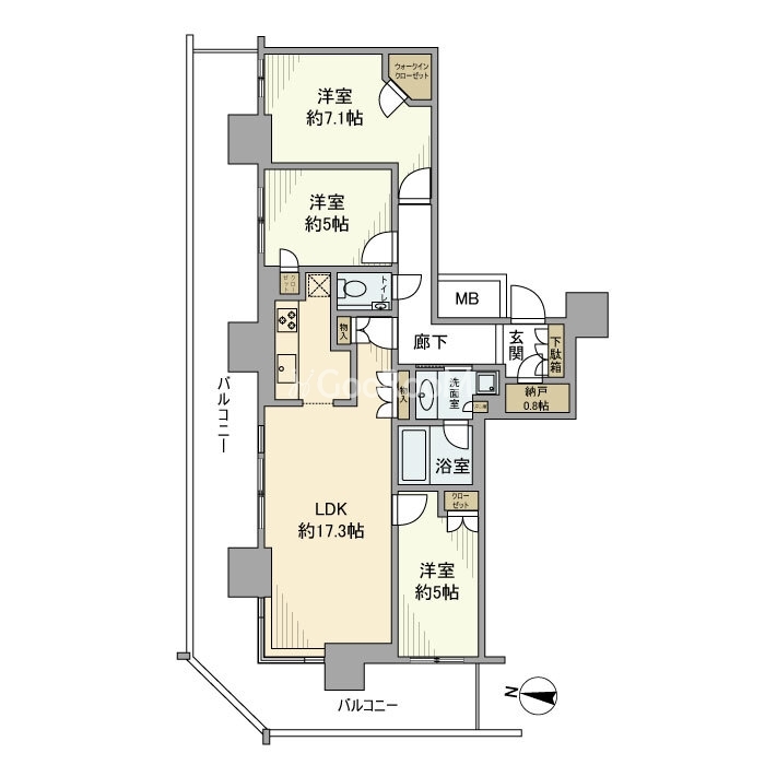 間取り | 3LDK | 専有面積 | 77.37㎡ |