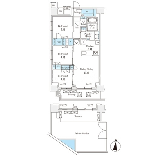 | 間取り | 3LDK | 専有面積 | 71.82㎡ |