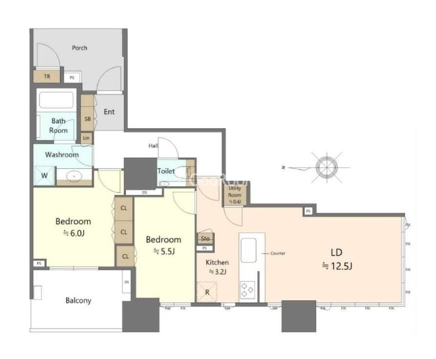 間取り | 2LDK | 専有面積 | 64.59㎡ |