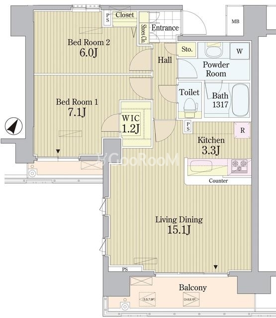 | 間取り | 2LDK | 専有面積 | 68.83㎡ |