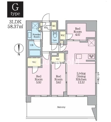 | 間取り | 3LDK | 専有面積 | 58.74㎡ |