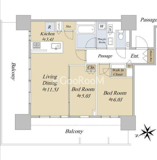 間取り | 2LDK | 専有面積 | 60.78㎡ |