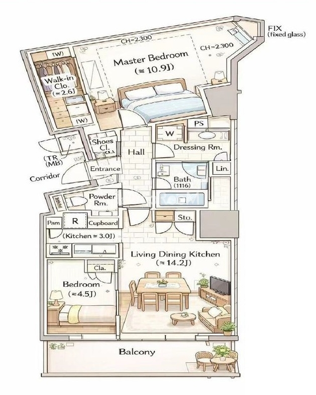 | 間取り | 2LDK | 専有面積 | 73.55㎡ |