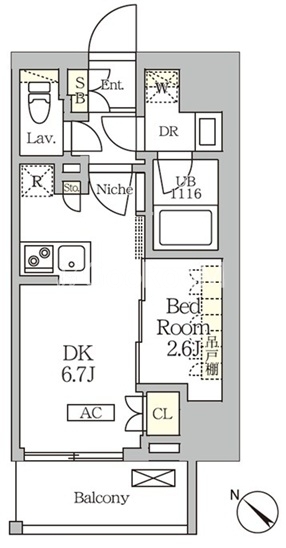 | 間取り | 1DK | 専有面積 | 25.16㎡ |