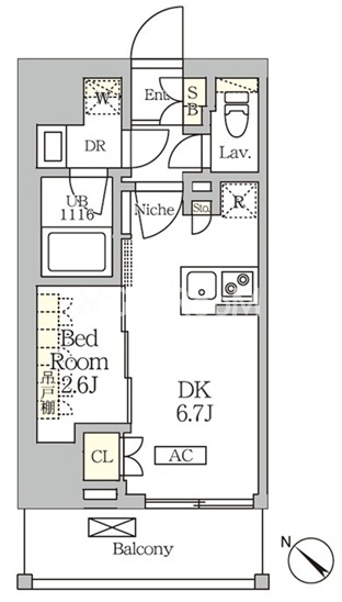 | 間取り | 1DK | 専有面積 | 25.16㎡ |