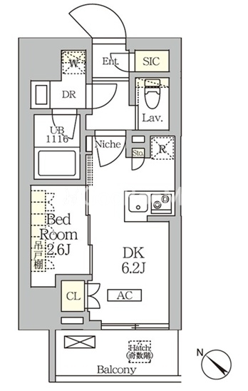 | 間取り | 1DK | 専有面積 | 25.16㎡ |