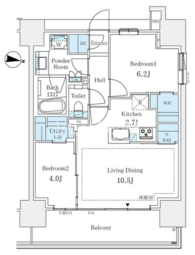 間取り | 2LDK | 専有面積 | 57.61㎡ |