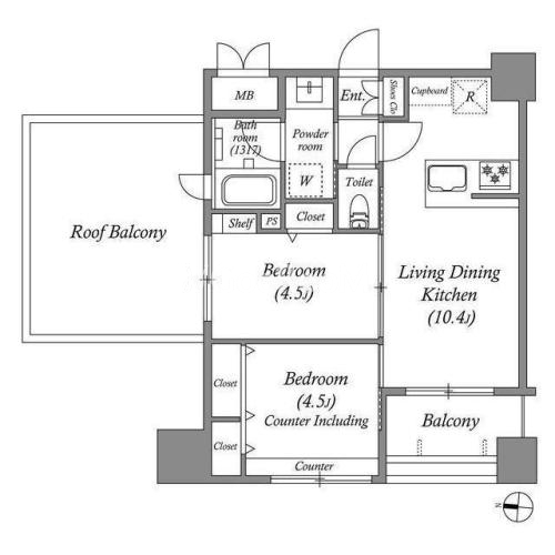 | 間取り | 2LDK | 専有面積 | 44.17㎡ |