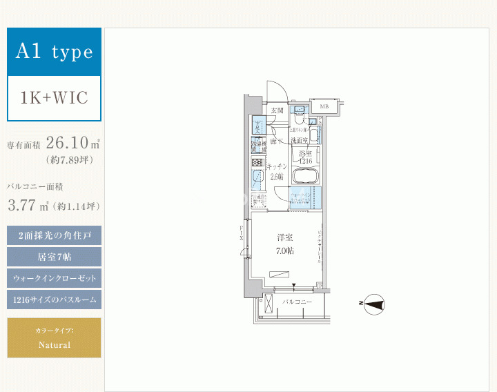 | 間取り | 1K | 専有面積 | 26.1㎡ |