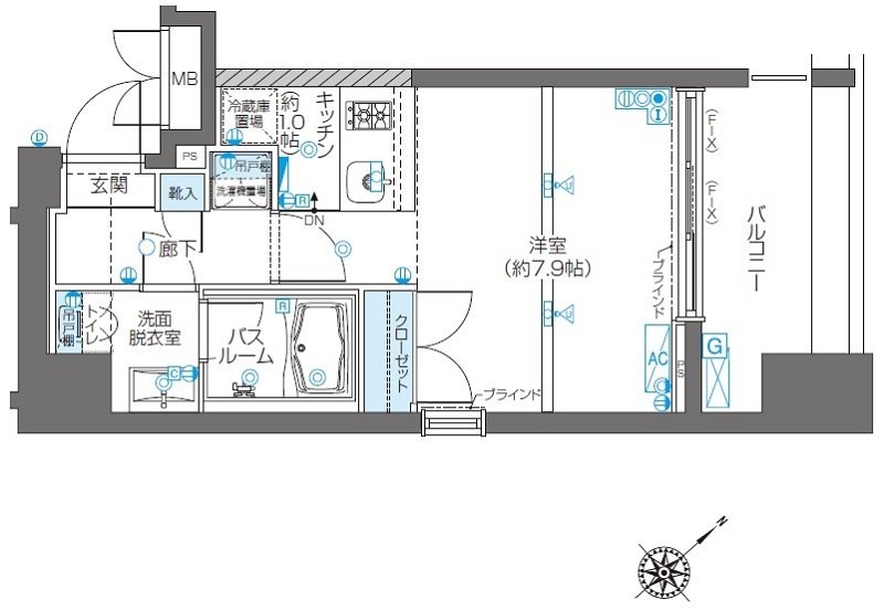 | 間取り | 1R | 専有面積 | 26.68㎡ |