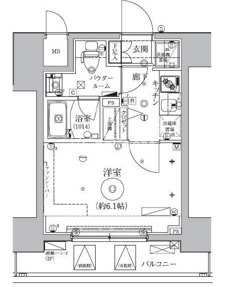 | 間取り | 1K | 専有面積 | 21.06㎡ |