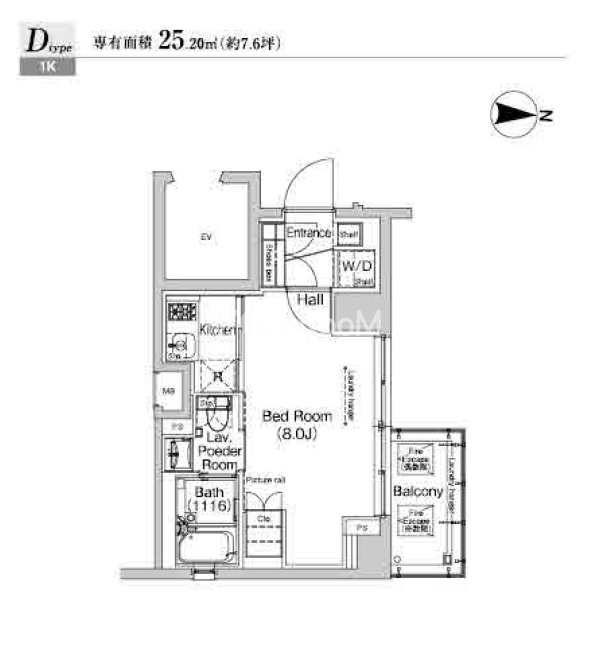 | 間取り | 1K | 専有面積 | 25.2㎡ |