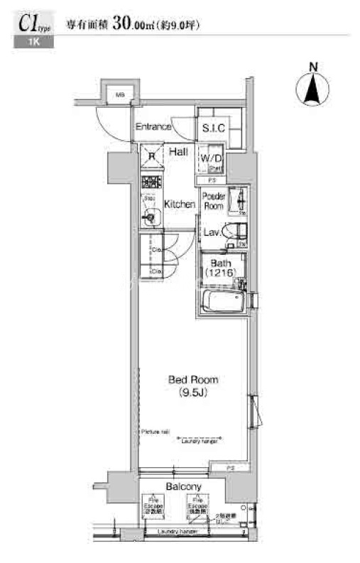 | 間取り | 1K | 専有面積 | 30㎡ |