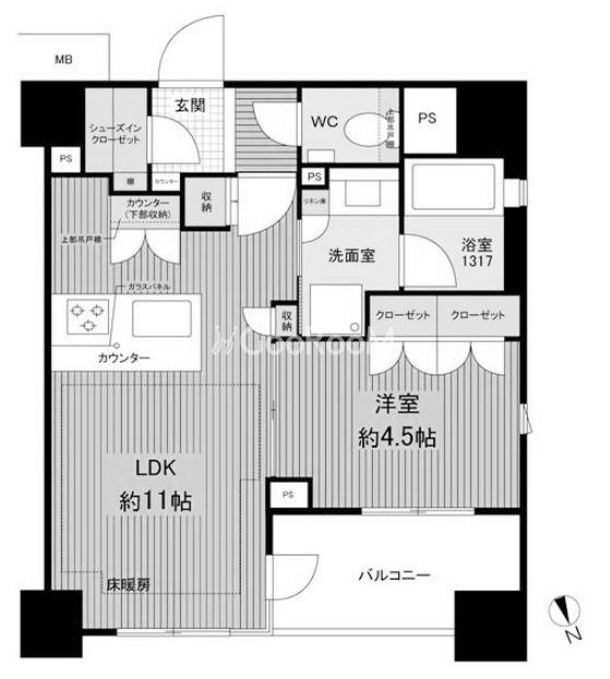 | 階数 | 4階 / 11階建 | 方位 | 北東 |