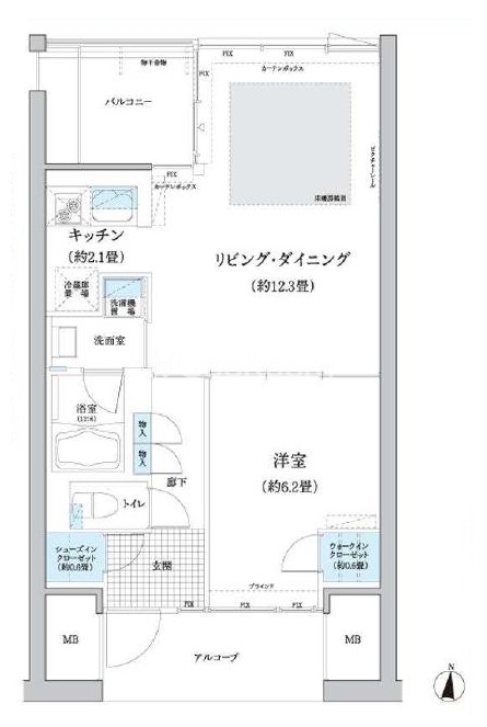 北向き、 広さ48.12㎡のお部屋です。