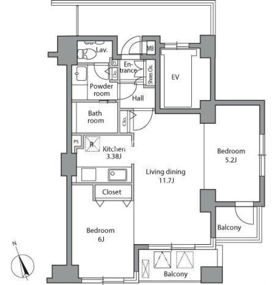 | 間取り | 2LDK | 専有面積 | 54.8㎡ |