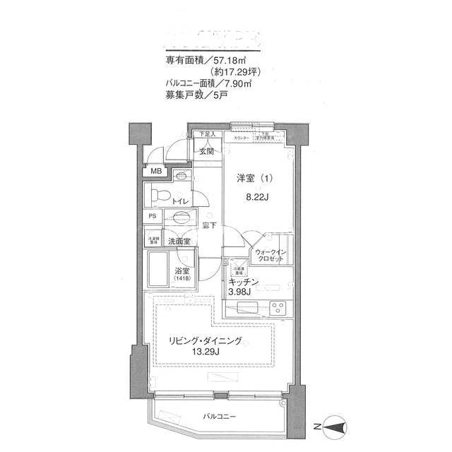 間取り | 1LDK | 専有面積 | 57.18㎡ |