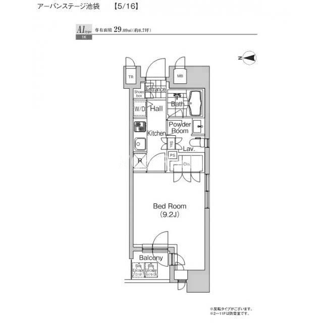 | 間取り | 1K | 専有面積 | 29.09㎡ |