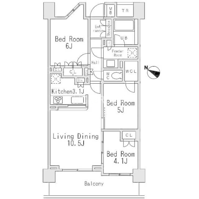 | 間取り | 3LDK | 専有面積 | 64.57㎡ |