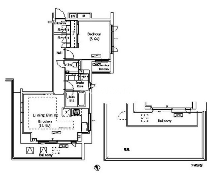 | 間取り | 1LDK | 専有面積 | 58.77㎡ |