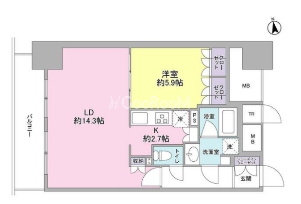 西向き、 広さ52.02㎡のお部屋です。