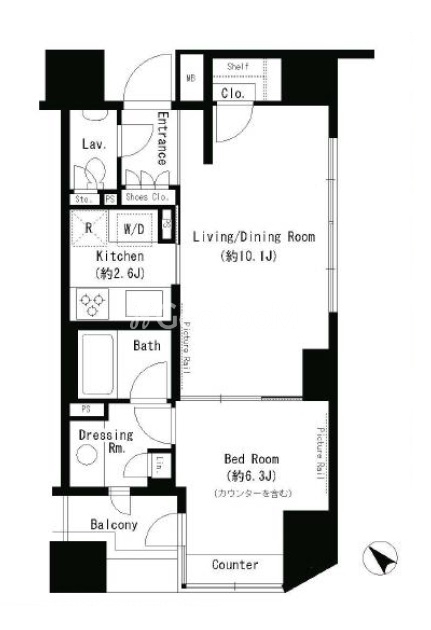 | 間取り | 1LDK | 専有面積 | 44.31㎡ |