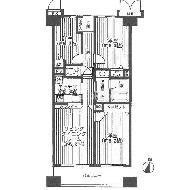 間取り | 3LDK | 専有面積 | 62.06㎡ |