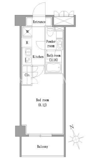 | 間取り | 1K | 専有面積 | 25.48㎡ |
