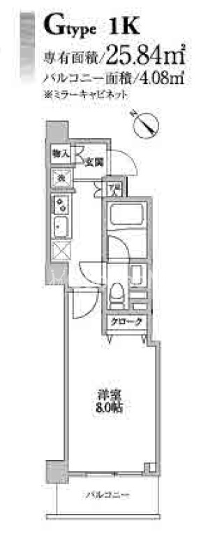 | 間取り | 1K | 専有面積 | 25.84㎡ |