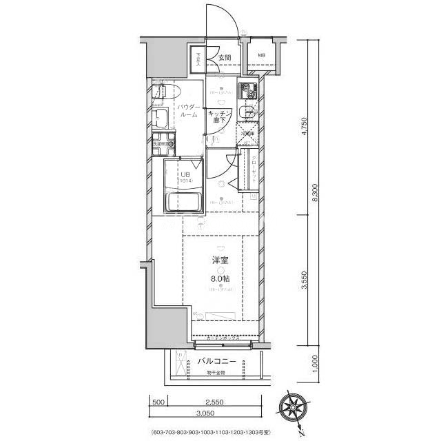| 階数 | 8階 / 13階建 | 方位 | 北東 |