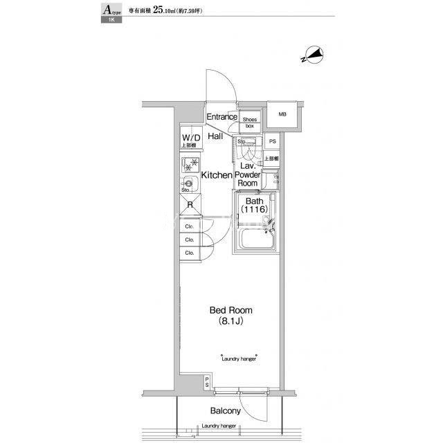 | 間取り | 1K | 専有面積 | 25.1㎡ |
