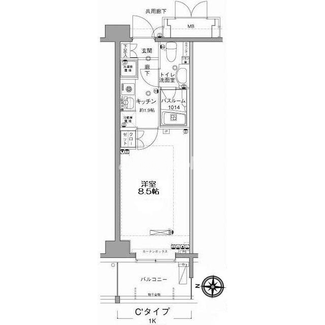 | 間取り | 1K | 専有面積 | 25.58㎡ |