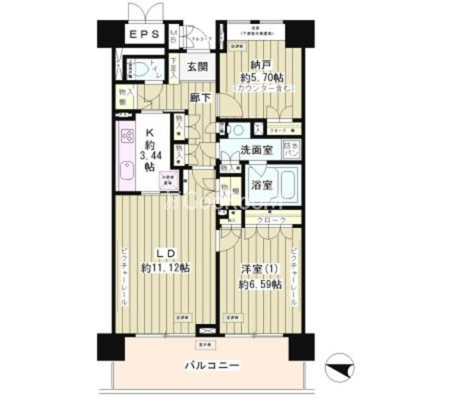 西向き、 広さ64.74㎡のお部屋です。